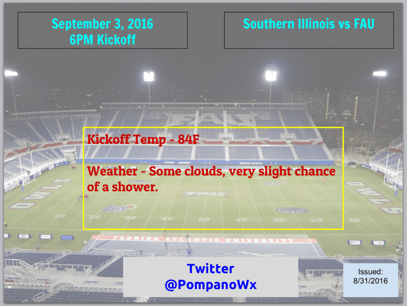 First Football Forecast – FAU Sept. 3 Discover more from Pompano Weather Subscribe to get the latest posts sent to your email. Type your email… Subscribe Share this: Click to share on Facebook (Opens in new window) Facebook Click to share on Reddit (Opens in new window) Reddit Click to share on Telegram (Opens in new window) Telegram Click to share on Threads (Opens in new window) Threads Click to share on WhatsApp (Opens in new window) WhatsApp Click to share on Mastodon (Opens in new window) Mastodon Click to share on Bluesky (Opens in new window) Bluesky Like Loading... Author: Howard Love talking about the weather, technology, and family (and not in that order). View all posts by Howard