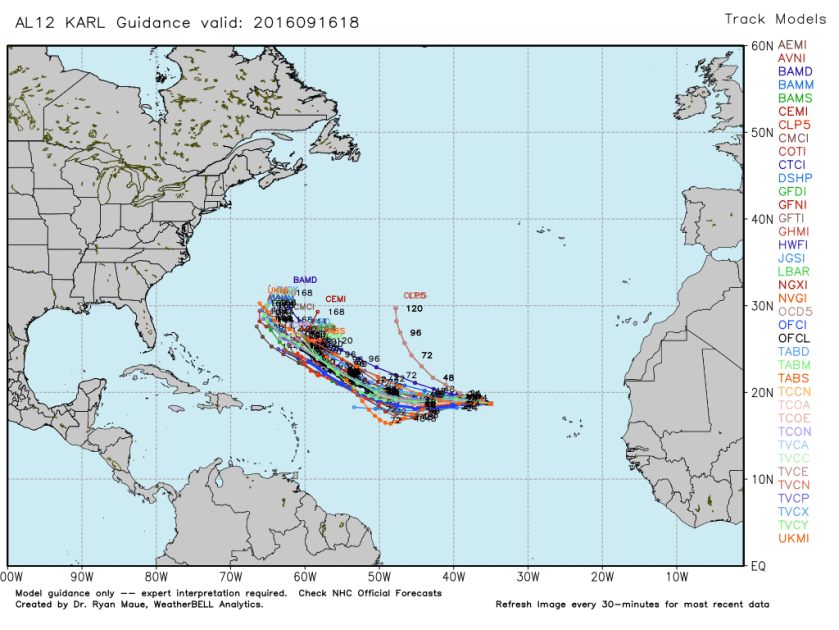 Finally, for now, Tropical Storm Karl is not under the best environmental conditions for strengthening but will be watched for the longer term.  Current model solutions are mostly in the school of calling this a “fish storm” and keeping it out to sea.  Too early to disregard it though.