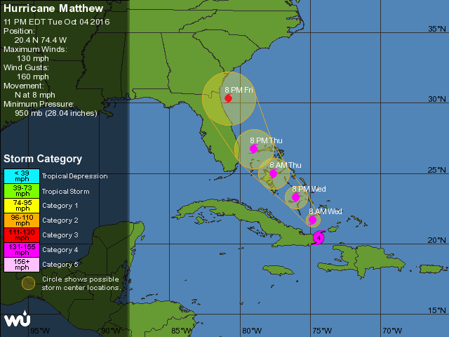 Now that warnings have been issued we must use Wednesday to finish preparing for Matthew.  I will have much more tomorrow. Here are the details from the 11pm advisory.