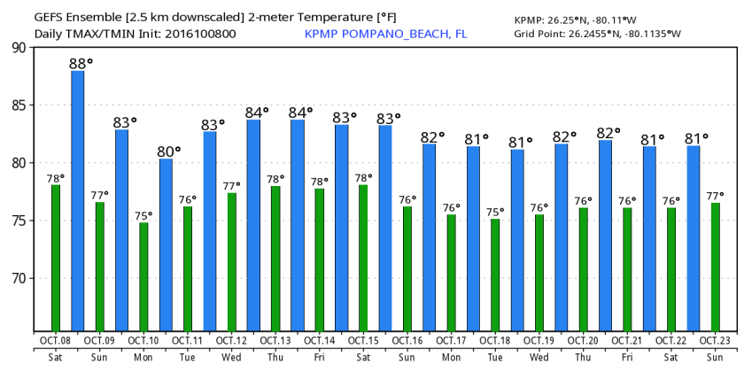 After being spared by Matthew we have a nice weekend ahead.  Today will be warmer than tomorrow with a high of 89F today and 85F.  Some dryer air may filter in on Monday before whatever Matthew is by midweek brings moisture back into the area.  Matthew is not expected to be anything of what it is today IF it does make it back to the Bahamas.
