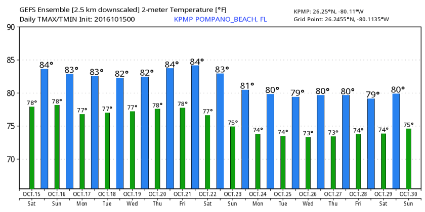 Not much change in the weather as we go into Monday and beyond until we get into next weekend. The Euro is calling for some much cooler weather come next Sunday but it is an outlier for the time being. Here are the modeled highs for the next 16 days per the GEFS, which does not show cooler weather at this time.