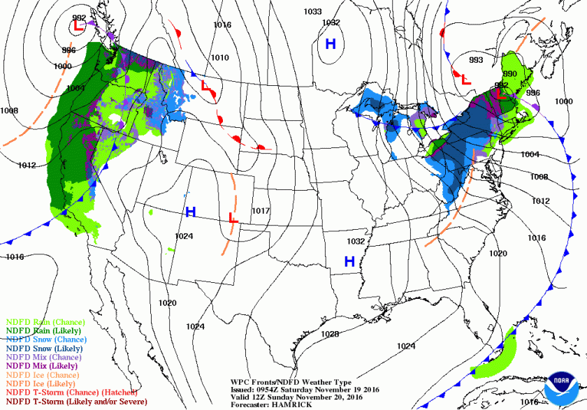 Tonight the cold front moves through giving us a very slight chance of a shower but it should be mostly dry, low on Sunday 63F. With the front just off our coast Sunday morning.