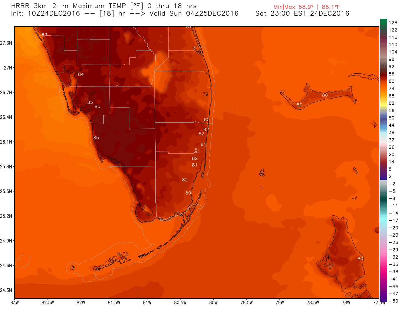This afternoon will be warm with a high of 83F.  The latest HRRR highs are below.