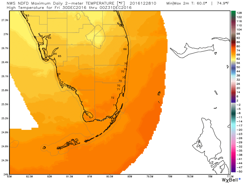 Some fog this morning with visibility in Pompano currently at 7 miles with a temp of 68F. Less clouds, wind, and rain today with a high of 82F.