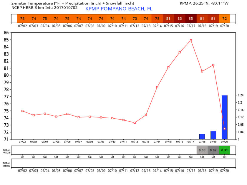 A couple notes from today’s weather, visibilities at Pompano Airport were .25 miles between 530 and 535am this morning. Also we reached a high of 80F.