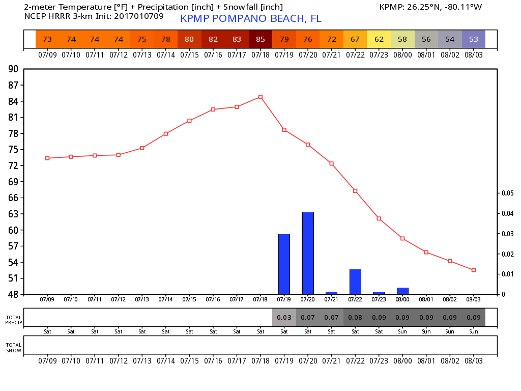 We will be warm through the morning with a high near 85F. After 12 noon we will have an increase in shower activity and possible thunderstorms through the afternoon. Then clearing and turning much cooler into the overnight hours. HRRR brings the activity in our area around 2pm.