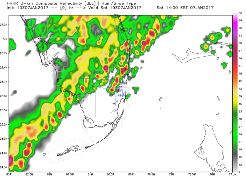 No real change to our expected weather today. Cold front is in the north/central Florida area with an area of showers and thunderstorms.
