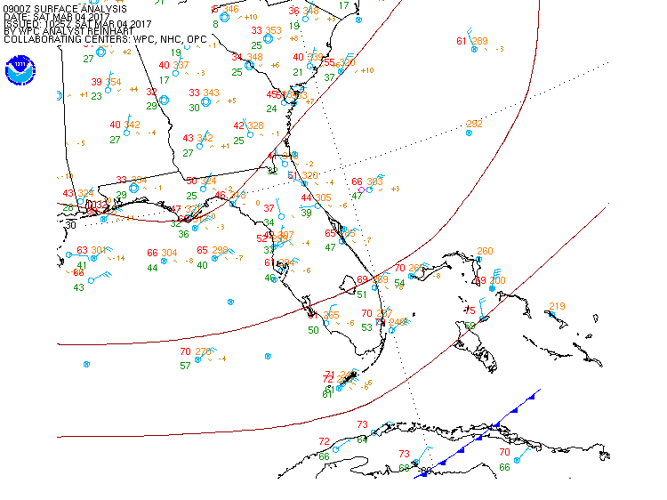 Latest surface analysis show some cooler weather in the northern part of the state but we remain mild in the south.
