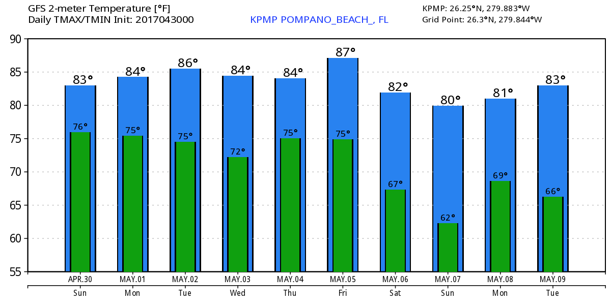 Looking out to the work week, much of the same with the wind relaxing some. Rain chances and temps remain about the same and at this point. It seeing much variation. The latest GFS highs and lows: