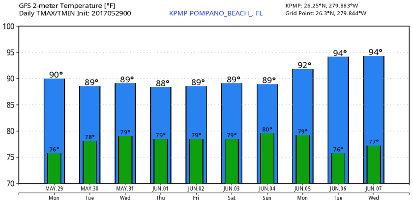 After a very hot day by south Florida standards we are sub-80 this morning at 78F. Miami set a monthly record high of 98F with most of the reporting sites in the mid 90s. I will post climate data from yesterday later.
