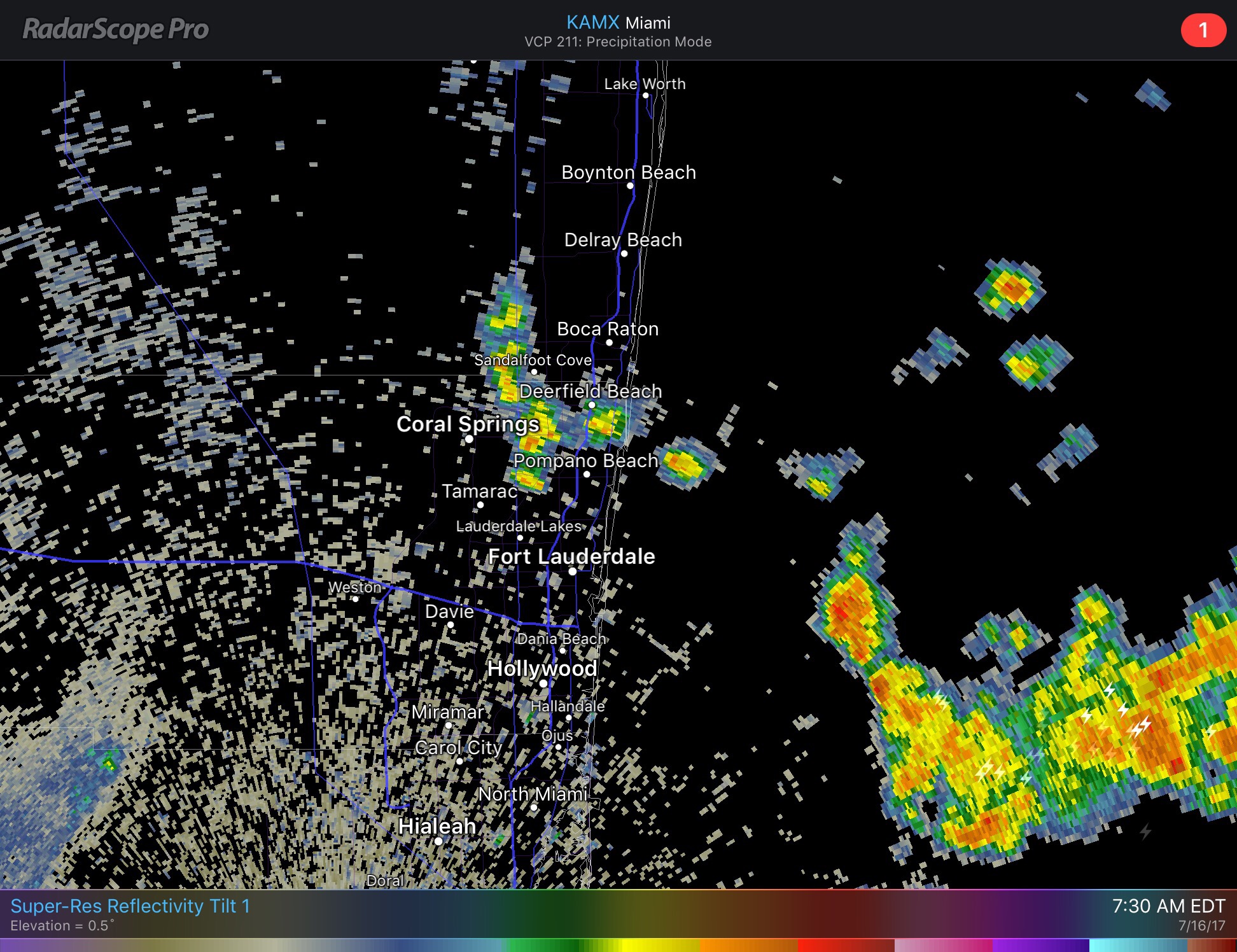 At 7am Pompano is at 82F with some passing shower activity in the area. Latest radar shows more activity offshore moving towards the coast.