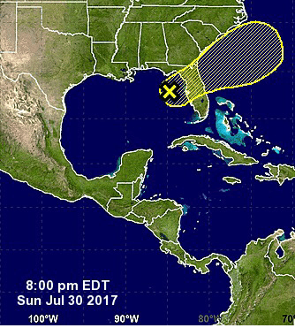A non-tropical low in the eastern Gulf of Mexico is being watched by the NHC for tropical development.  This feature will bring rain and thunderstorms to most of the start with the concentration over the central and northern parts of Florida.