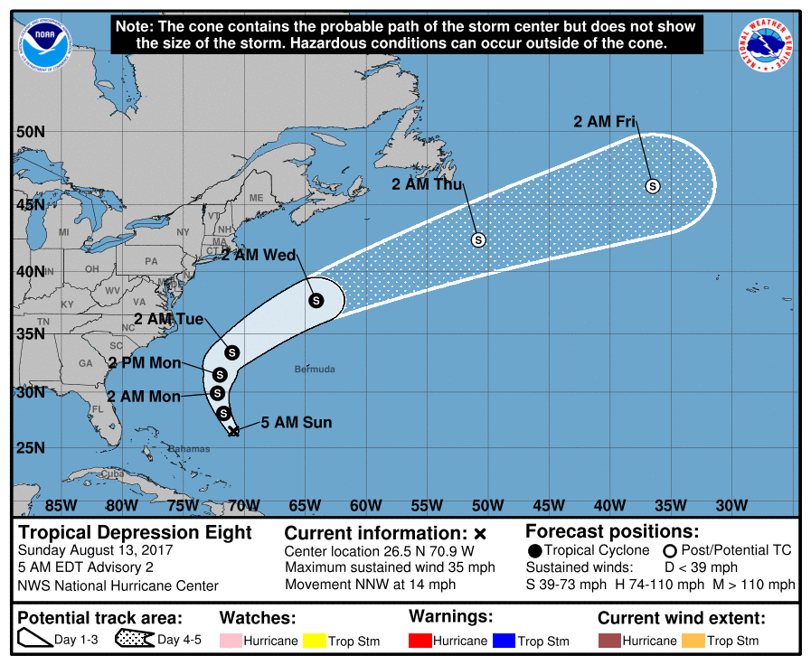 TD8 formed yesterday and is expected to strengthen. This system will pose no direct threat to Florida or at this time the east coast. The latest NHC forecast keeps the system well off the coast and away from any land areas.