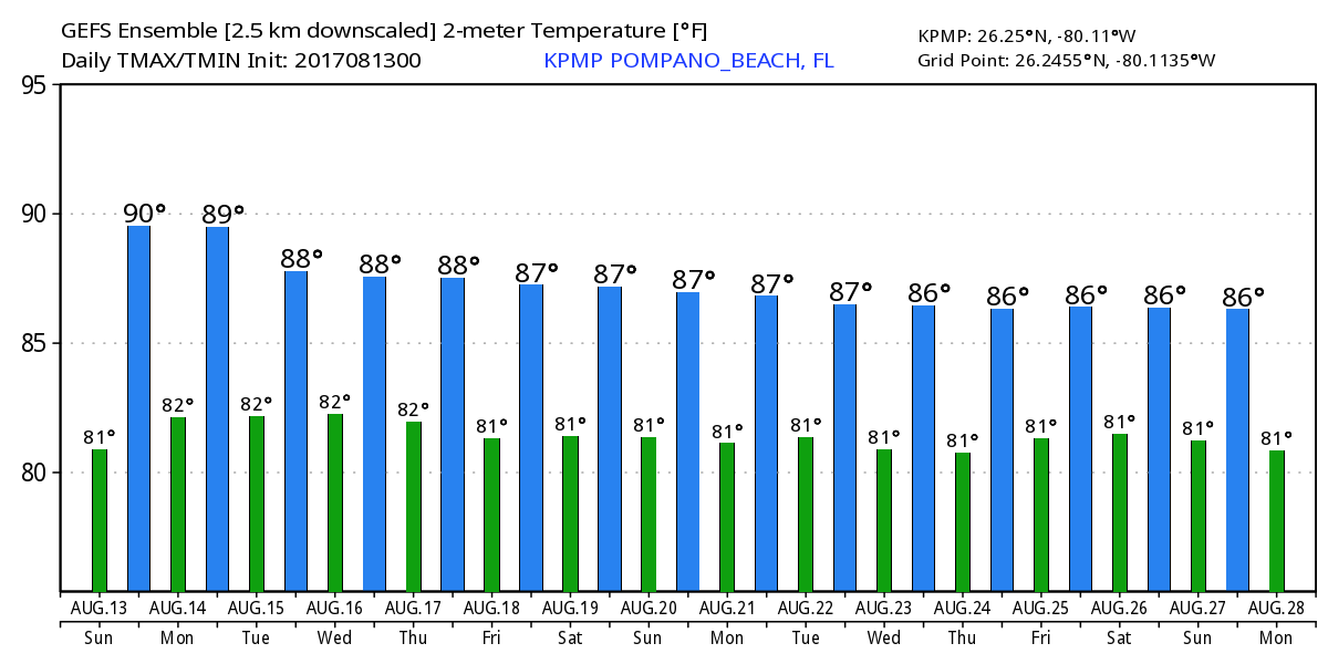 This pattern will continue for the next week with no exceptional chances of rain or temperature variation. As seen in the latest GEFS output temps looks very predicatiable,