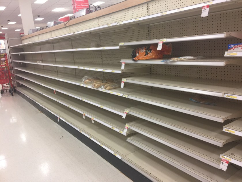 For those in south Florida please take the time to prepare for Irma! In the meantime enjoy my picture from Target tonight of the lack of bread items.