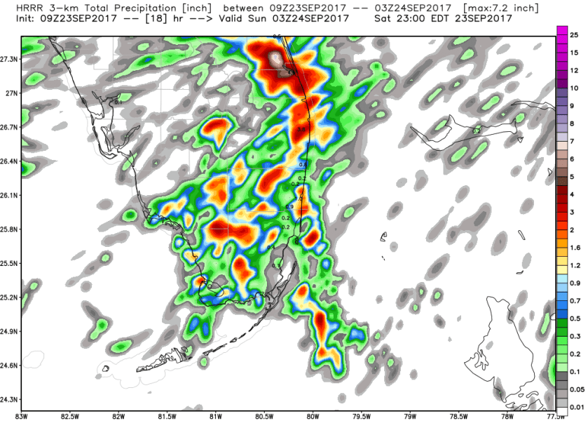 Today will be breezy with showers, especially this afternoon, with some possible lightning. Latest models forecast rainfall amounts between .2 and one inch total today. Yesterday I had ,56 inches at home. Here is the latest HRRR for rainfall totals today.