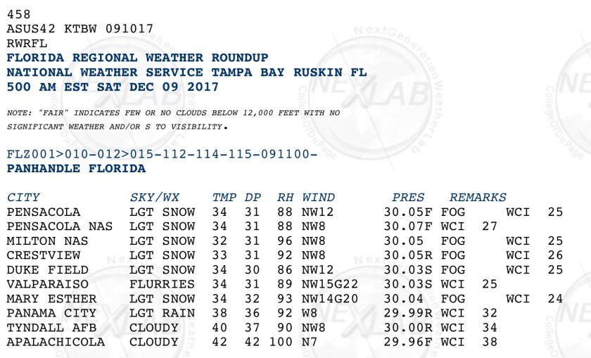 This front is currently producing snow in the panhandle area of the state. Here are the observations from the area.