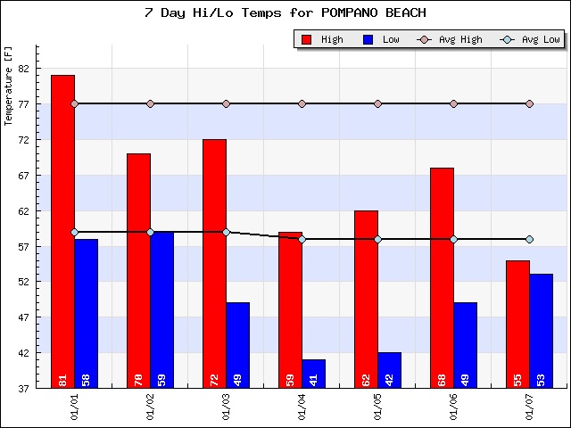 After a cold start to our new year our temps have been warming up over the past few days. That will continue today and we may actually get to a high of 70F this afternoon. Currently we are 53F with partly cloudy skies.