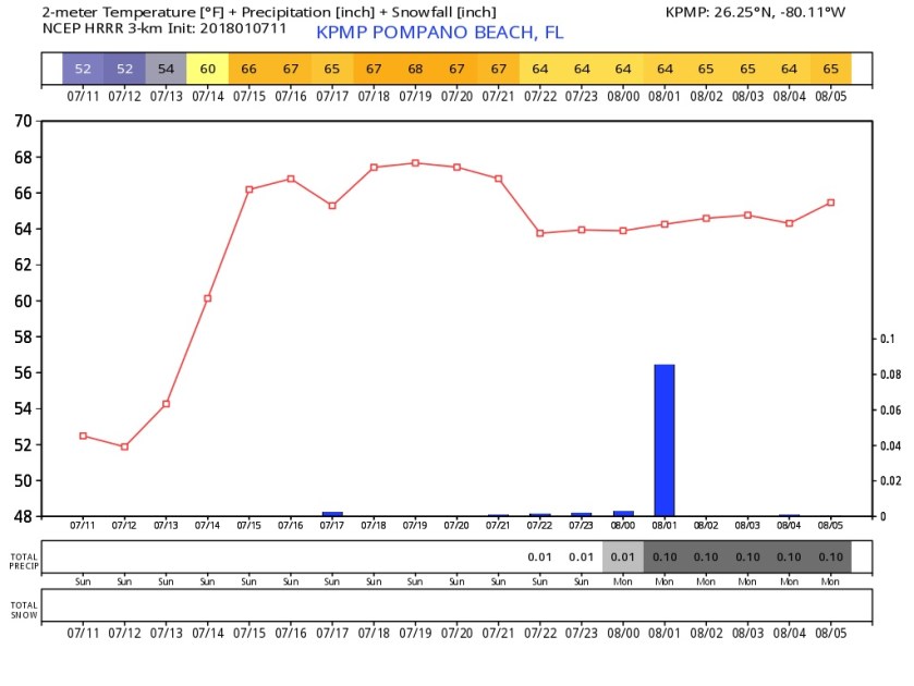 Along with this warming trend we could see some showers around, so we may not be as dry as we have been. The latest HRRR gives a hint of this but keeps us shy of 70F.