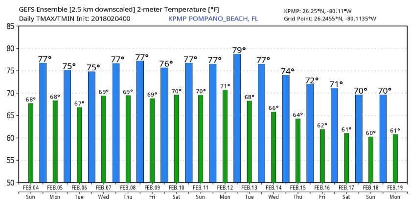 Is the cool weather done? No, not yet. GEFS does show a return to the lower 60’s towards the end of next weekend and into the week of Feb 12. So do not put away the jackets.