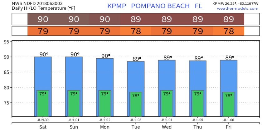 A warm 82F at 5am in Pompano Beach as we begin this weekend.
