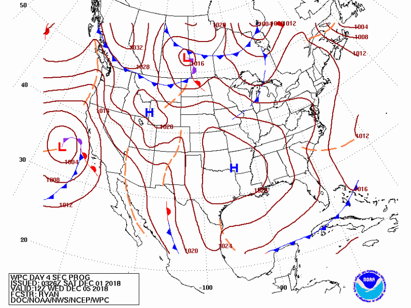 Next cold front will come through later Tuesday dropping our highs back into the 70s for the balance of the week. At this time no significant weather is expected with the passage of the front but will keep an eye on it. Forecast chart for Wednesday morning shows the front well to our south at the time.