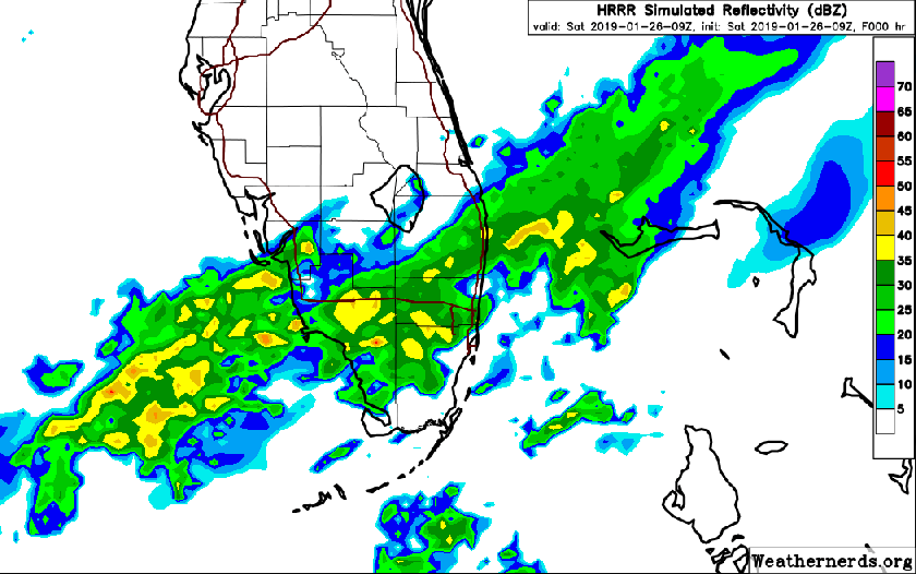 This is due to a front that will move north over us very slowly and this rain will linger into Sunday with a bit of an increase in severe weather chances Sunday for the extreme southern tip of the peninsula which will monitored. For today, not expecting anything severe or flooding concerns today.
