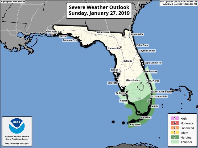 As we go,through today a cold front will approach and move through the area with plenty of shower activity ahead of it. So again today we will see planets of shower activity with a chance of strong to severe thunderstorms this afternoon. Focus for the stronger storms will be south of south of middle Palm Beach county and areas south. This is shown in the latest SPC outlook placing us in a Marginal risk of severe weather.