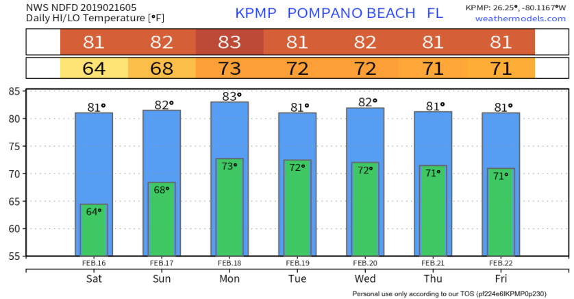 This is great weather if you want to partake in some of the area festivals such as the Renaissance Festival in Deerfield or the Italian Festival here in Pompano. This is a great time to be outdoors, not too hot/cold along with the nice dew points.