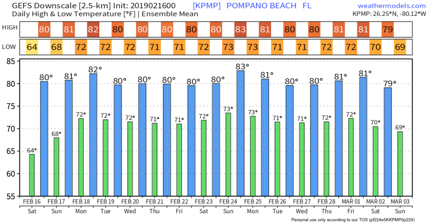 Looking into the far, extended temperature trends (with a grain of salt) the GEFS does not show any signs of winter temps for us going into the first few days of March and keeps us around 80° for the rest of the month.