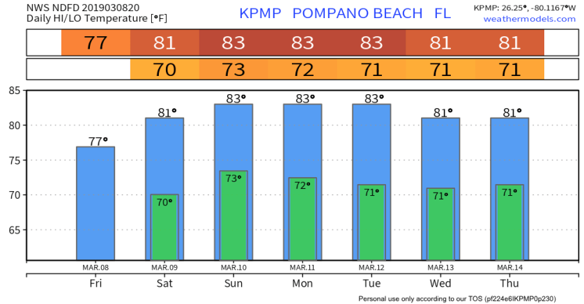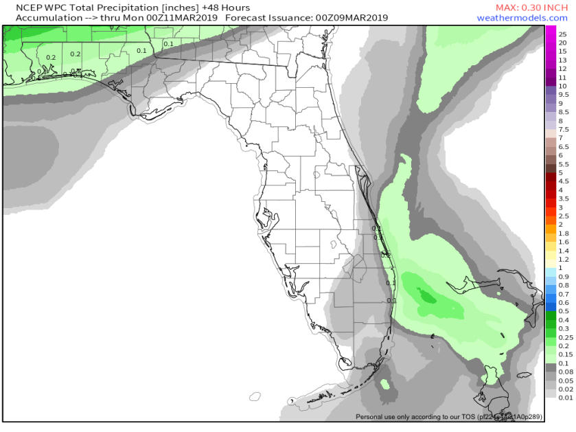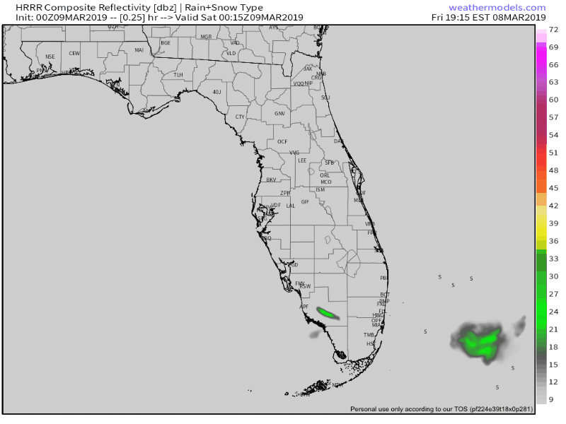 After our cool down this past week the weekend ahead will bring us back above normal temp wise with a risk of a light shower anytime. The HRRR shows quick, light showers affecting the SE coast of Florida though early Sunday.