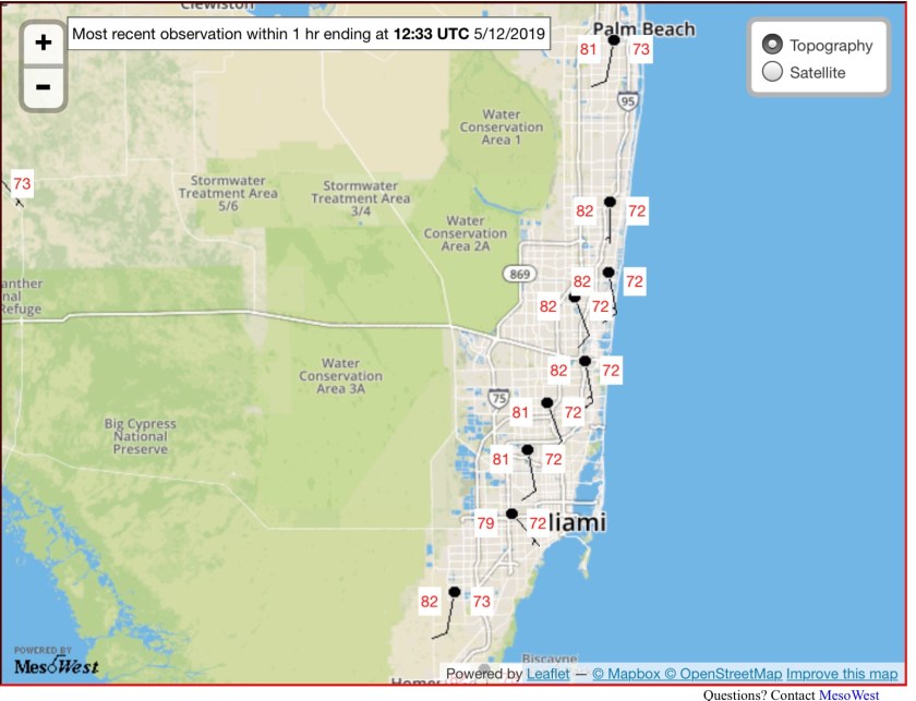 Happy Mother’s Day and we will have a mixture of weather today. Starting off with 82° and a mostly clear radar with just a couple showers off the Atlantic coast.