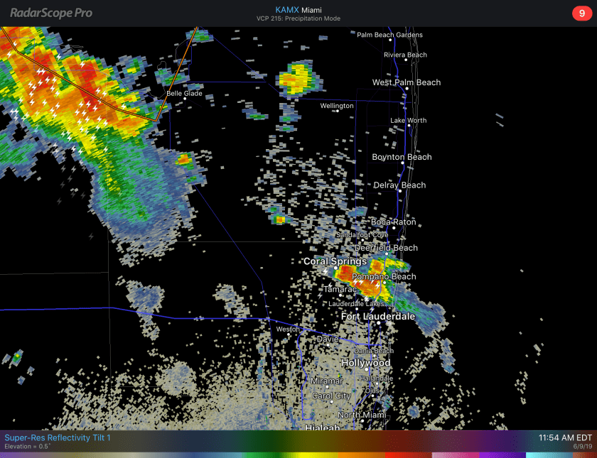 As we approach the noon time hour Pompano is at 88° with a dew point of 77°. In other words very muggy as thunderstorms approach the area.
