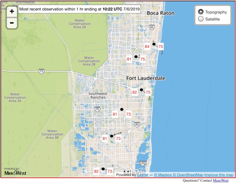 As the sun starts to rise we are at 84° this morning with a dew point of 75° in Pompano Beach.