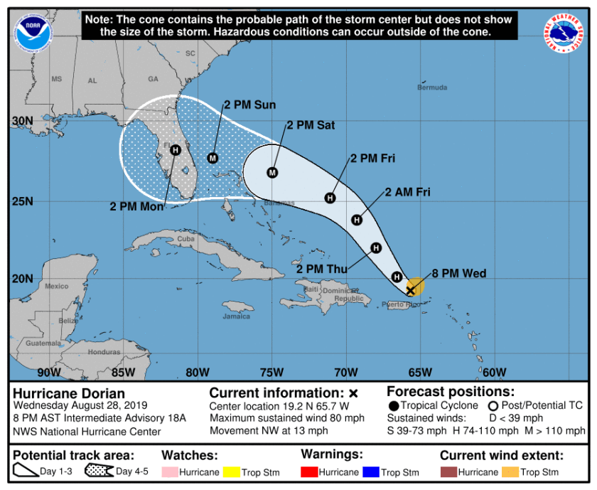 Again, nobody can give a confident answer as to where Dorian will go but be ready regardless of where you are in Florida. Remember to give yourself time to get those items you will need and just be kind, for many this may be their first tropical encounter and we need to show and lead the way to prepare. More tomorrow.
