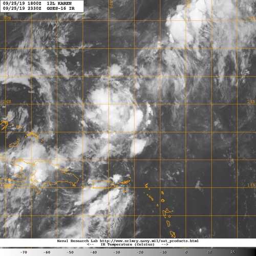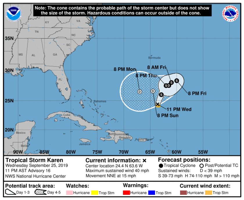 The saga of where Tropical Storm Karen will go has been fascinating, especially the consistent forecast of some kind of “loop” or sharp southwest turn the system may make in response to a ridge over the eastern US.