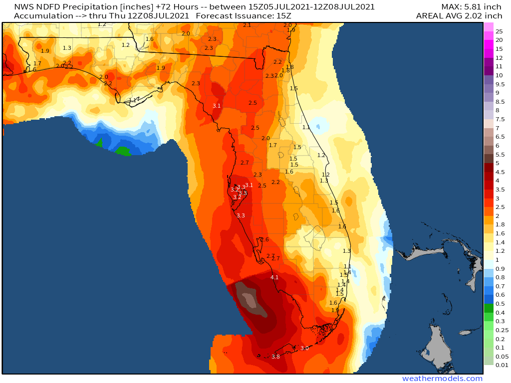 Later today and into tomorrow we will feel some effects from Elsa. Our primary threats in Broward and Palm Beach counties will be gusty showers/thunderstorms and the possibility of an isolated tornado and waterspouts. Currently rainfall forecast totals are between one and two inches with peak wind gusts around 30mph. Higher rainfall amounts and higher gusts are possible in isolated areas.