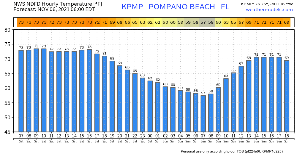 Tonight’s low will be 57° with a wonderful weather day tomorrow with clear skies, no rain and an extra hour of sleep. Enjoy your day!