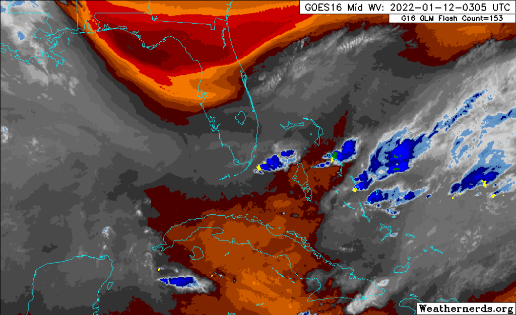Certainly more rain around than we have see in awhile. As of 7pm tonight Pompano Airpark has received .71 inches of rain, with more to come. Latest satellite (water vapor) shows dry air well to our north with ample moisture in place over south Florida.