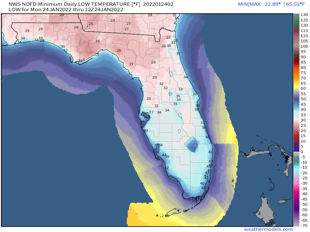 Cool night and Monday morning ahead. Current forecast has a low tomorrow morning of 43°. Thought the latest HRRR now has us at 41°.