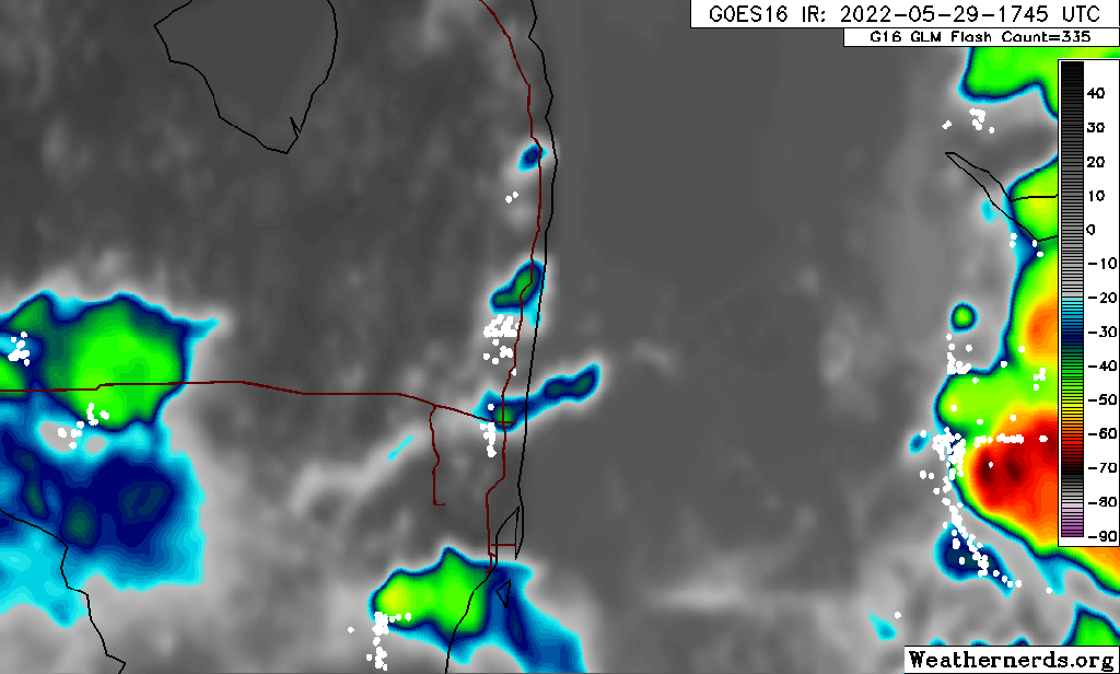 Over the past couple of hours thunderstorm activity has blossomed over southeast Florida. Between the satellite and radar loops the focus has been on the eastern half of the counties.