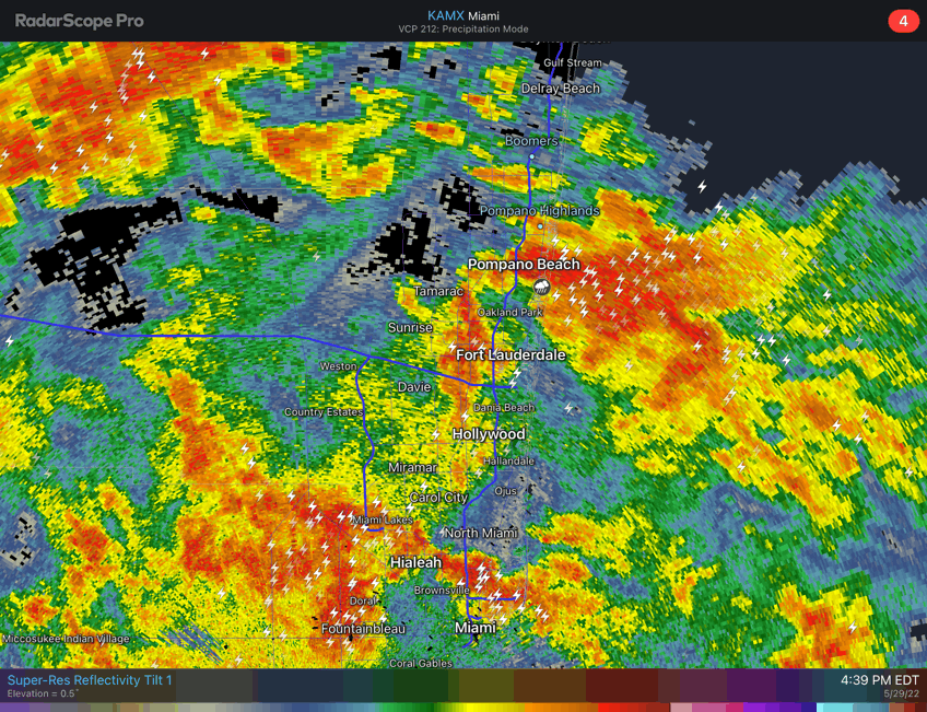 Pompano Beach Airport has recorded a 44mph wind gust last hour and over 1.5 inches of rain. There have also been a couple of small hail reports.