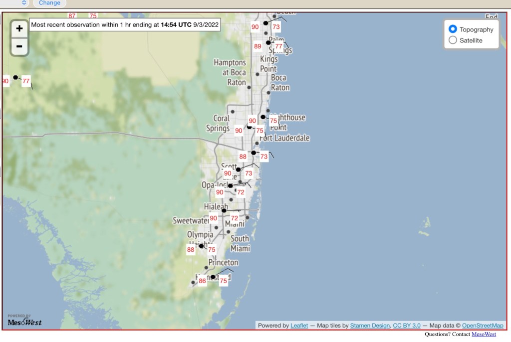 As usual this time of year we are already hovering around 90° with dew points between 73° and 75°.
