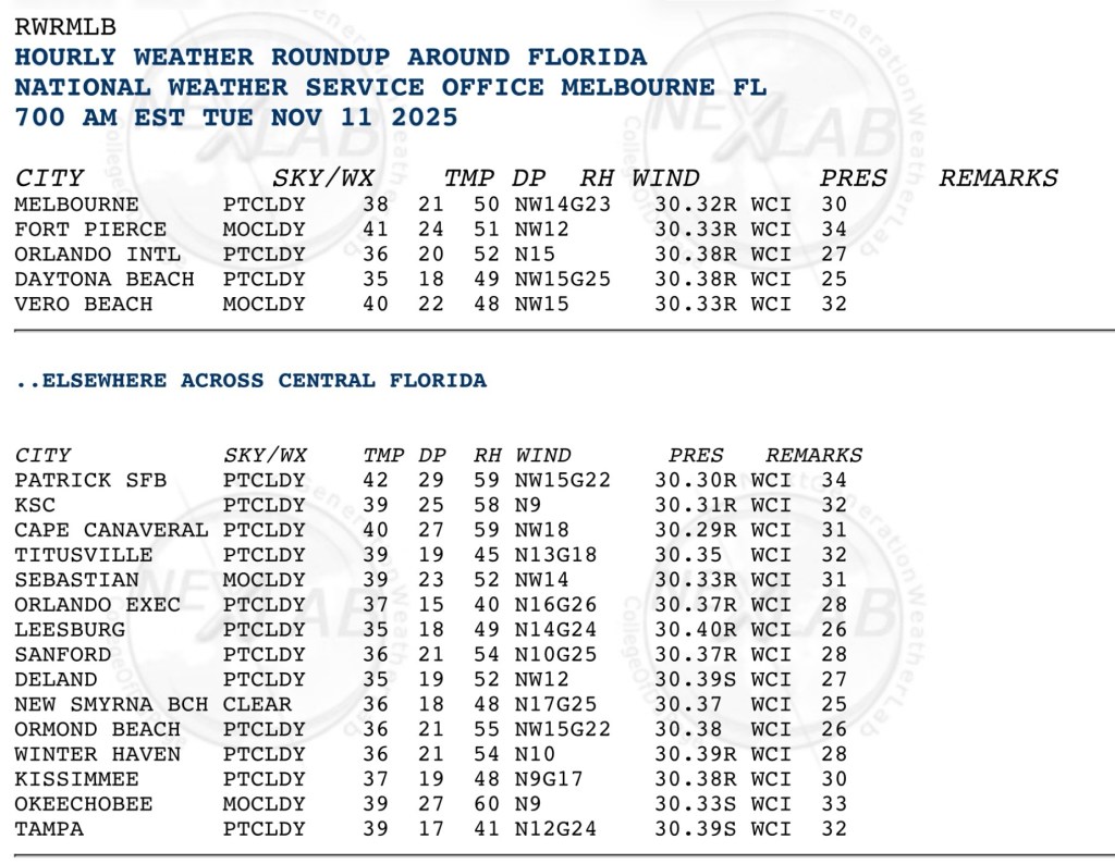Overnight, temps will drop a bit, with a Black Friday low of 59°. A beautiful, cool day follows on Friday, with winds relaxing a bit and a high of 72°.