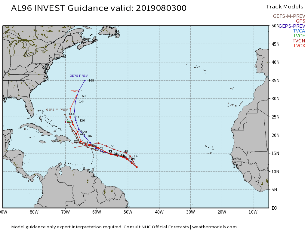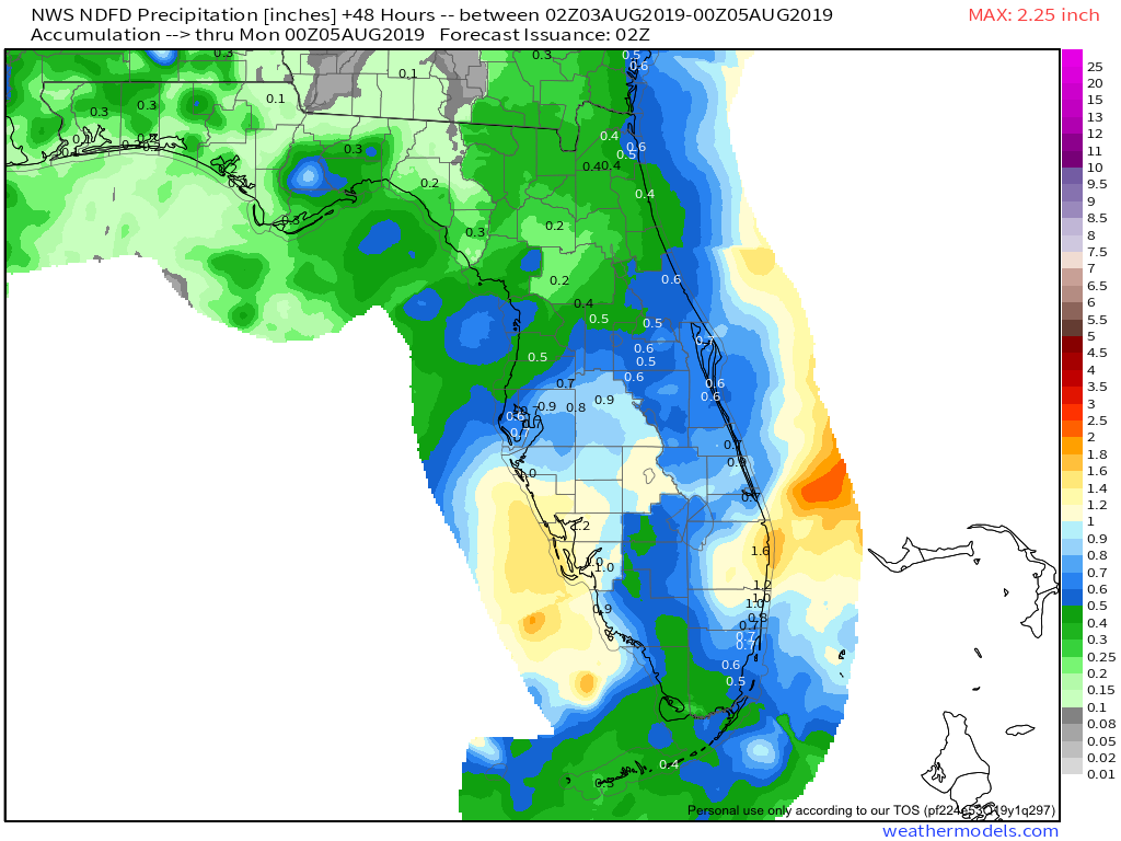 Though we will have a good chance of rain Friday through the weekend we will see no direct impacts besides the rain from this system if it develops. Global models all indicate that the system will move AWAY from Florida. The latest ensemble from the Euro help depict this.