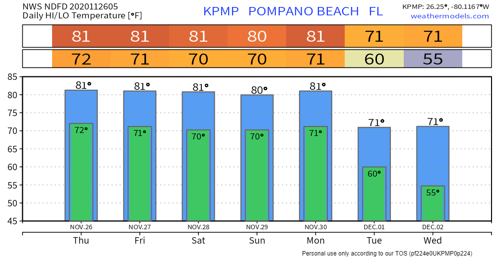 Starting Labor Day Monday with 86° in Pompano as we prepare for a high today of 93°. Yes, still quite summer-like today. Latest temps around the SE coast look like this at 8am.