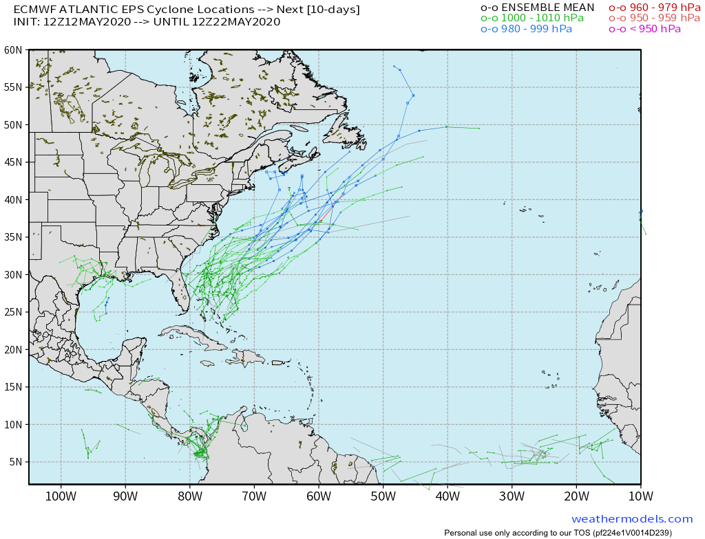 Cristobal is a lop-sided storm with dry air on the west side and all the moisture and wind on the east. Activity will move from Cristobal towards Florida. Current radar shows most of this activity not quite making it over to the east coast but there is plenty of moisture and with daytime heating we may see showers and thunderstorms especially this afternoon and evening.
