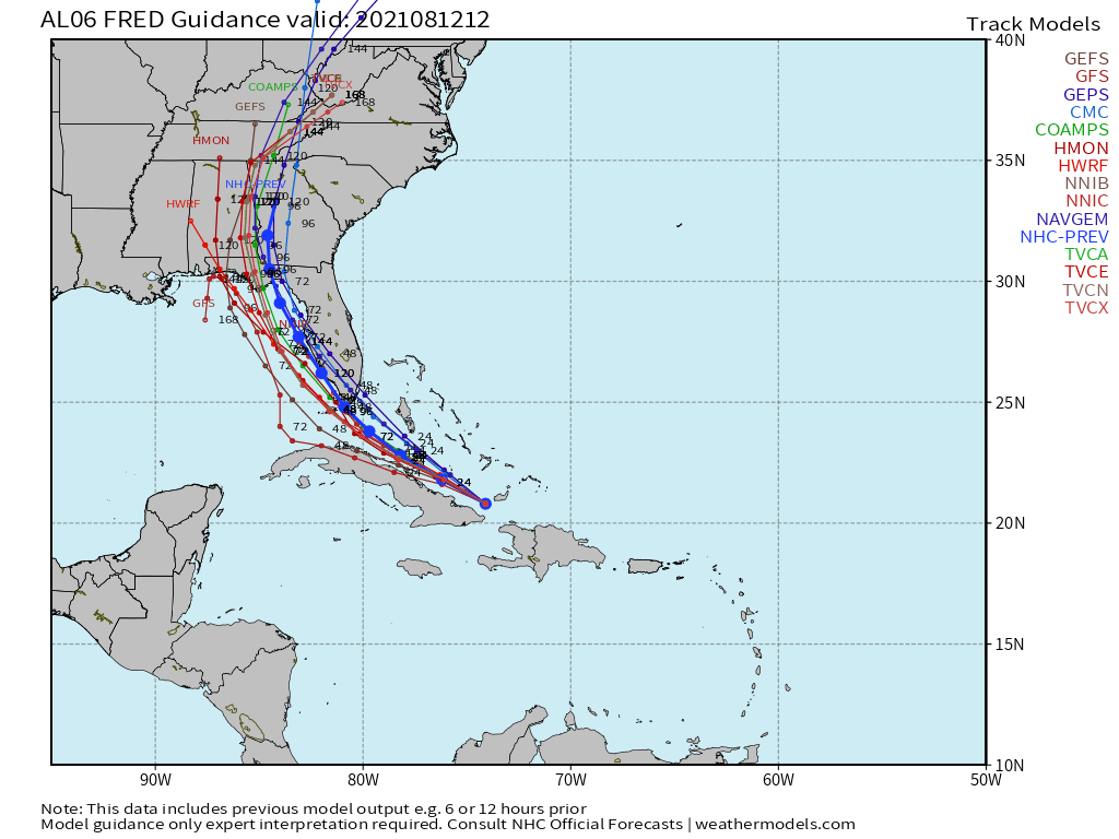 Tropical Storm Grace remains a small, compact storm with an uncertain future. SE Florida is currently out of the cone but this could change as land interactions will inhibit strengthening while if it remains north (or even south) of the islands will allow slow, steady strengthening. Grace will need to be watched as we go into the new week. Some of the latest models show there is some consensus but it is not unanimous.