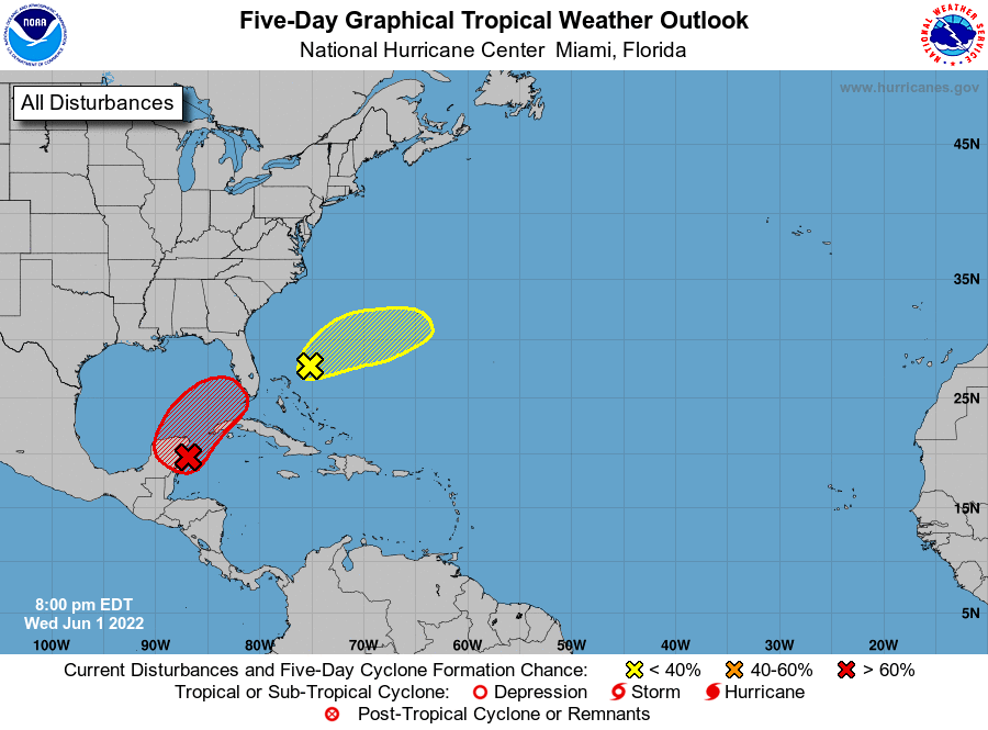 The tropical wave we mentioned yesterday, 91L, now has a high chance of development and we could see a depression form before the end of the week. It is still early to say where and if the storm will develop.