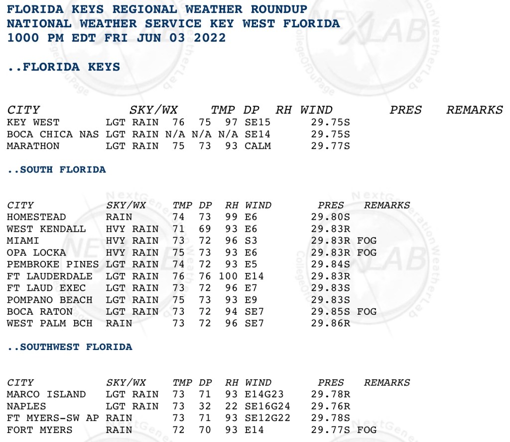Tomorrow we will begin to see a slight drop in our rain chances while we warm up a couple of degrees. The showers we had this morning did produce some gusty winds including a gust to 44mph at Hillsboro Inlet at 7:03am. This activity also helped cool all the reporting stations in the area below 80°. It was refreshing.